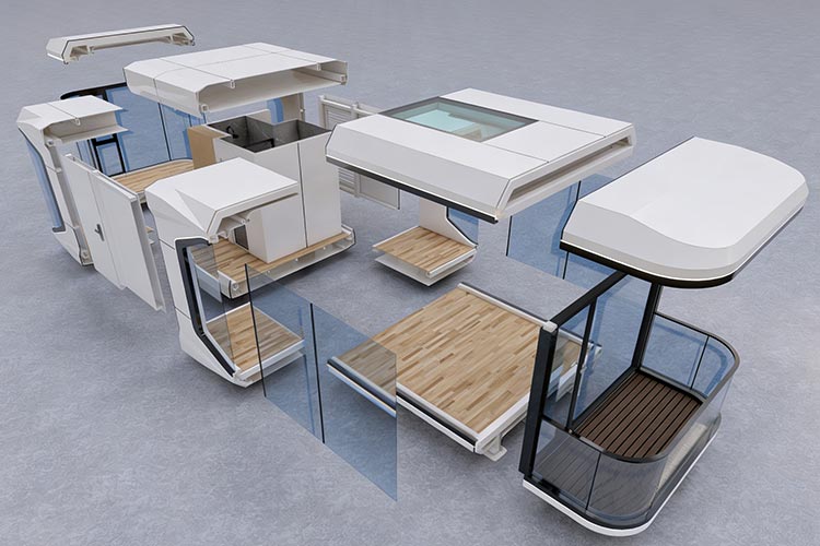 Honeycomb flooring utilizes a unique honeycomb structure combined with a continuous fiber reinforced thermoplastic (CFRT) surface composite process. This maximizes weight reduction while maintaining structural strength, resulting in a lighter texture and minimal impact on the overall load of the capsule house.