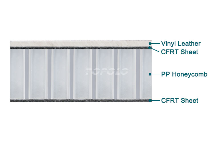 - Panel structure: Vinyl leather + CFRT sheet + PP Honeycomb + CFRT sheet.